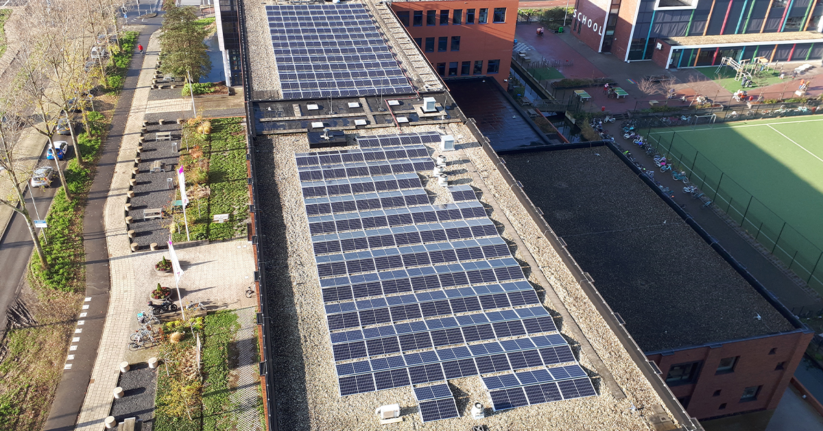 Driestar educatief greep het jubileumjaar 2019 aan om de duurzaamheidsambities een nieuwe impuls te geven. Vanuit een meerjarenvisie op gebied van duurzaamheid kozen we voor de installatie van zonnepanelen, die onder begeleiding van Unica geplaatst werden. Optimalisatie van de bestaande klimaatvoorzieningen en aansluiting van de zonnepanelen op de installaties was ook onderdeel van het traject.